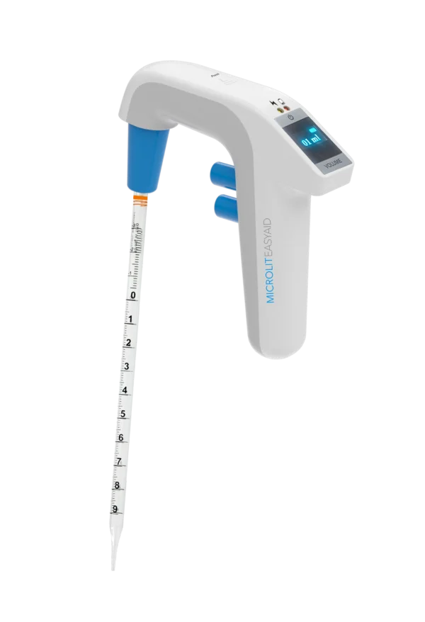 De Microlit EASYAID is een elektronisch pipet voor vloeistofverwerking in gegradueerde en enkelvoudige pipetten, van glas of kunststof, met een volumebereik van 0,1 ml tot 100 ml. Het werkt op batterijen en wordt aangestuurd door een pomp. Het biedt hoge precisie, nauwkeurigheid en betrouwbaarheid in praktische laboratoriumomgevingen. Bij correct gebruik komt de vloeistof alleen in contact met de pipet.